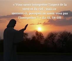 En ce temps-là, Jésus disait aux foules : « Quand vous voyez un nuage monter au couchant, vous dites aussitôt qu’il va pleuvoir, et c’est ce qui arrive. Et quand vous voyez souffler le vent du sud, vous dites qu’il fera une chaleur torride, et cela arrive. Hypocrites ! Vous savez interpréter l’aspect de la terre et du ciel ; mais ce moment-ci, pourquoi ne savez-vous pas l’interpréter ?
