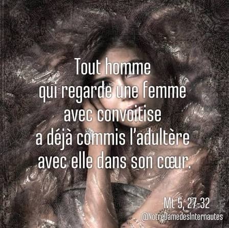 Eh bien ! moi, je vous dis : Tout homme qui regarde une femme avec convoitise a déjà commis l’adultère avec elle dans son cœur.