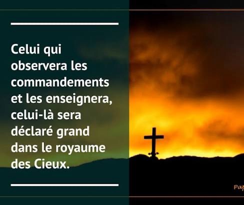 Donc, celui qui rejettera un seul de ces plus petits commandements, et qui enseignera aux hommes à faire ainsi, sera déclaré le plus petit dans le royaume des Cieux. Mais celui qui les observera et les enseignera, celui-là sera déclaré grand dans le royaume des Cieux. »