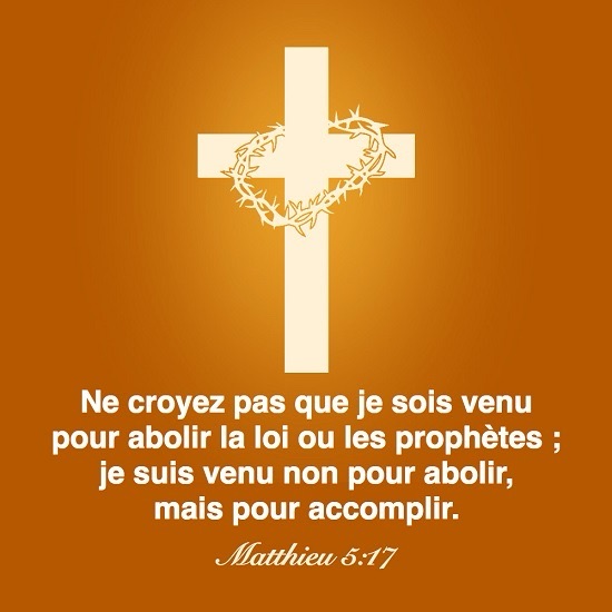 Amen, je vous le dis : Avant que le ciel et la terre disparaissent, pas un seul iota, pas un seul trait ne disparaîtra de la Loi jusqu’à ce que tout se réalise.