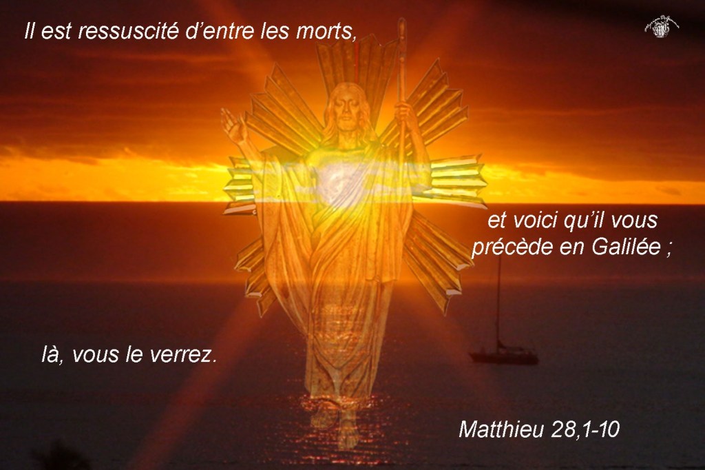 Puis, vite, allez dire à ses disciples : “Il est ressuscité d’entre les morts, et voici qu’il vous précède en Galilée ; là, vous le verrez.” Voilà ce que j’avais à vous dire. »