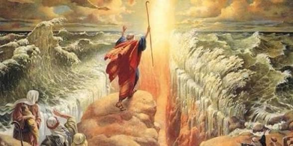 Moïse étendit le bras sur la mer. Le Seigneur chassa la mer toute la nuit par un fort vent d’est ; il mit la mer à sec, et les eaux se fendirent.