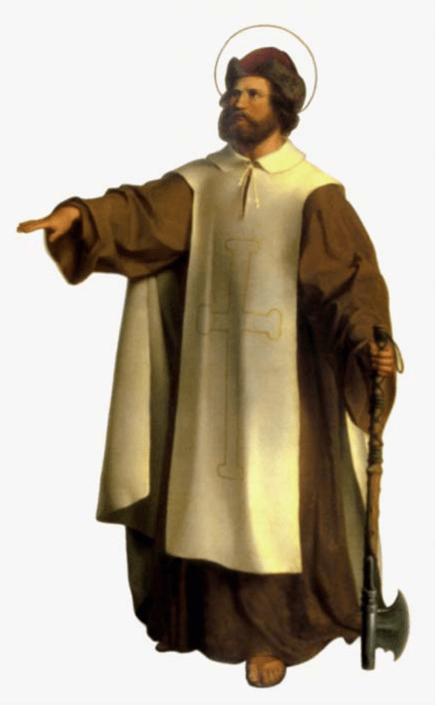 Un jour, il fait abattre un arbre de superstition, qui servait d’idole à un peuple aveugle, et quand la foule en fureur va se jeter sur lui, un prodige vient soudain la calmer : l’arbre énorme se plie sous une main invisible et va tomber en quatre tronçons aux pieds du Saint. Le Christ avait vaincu ; des milliers de païens demandèrent le baptême.
