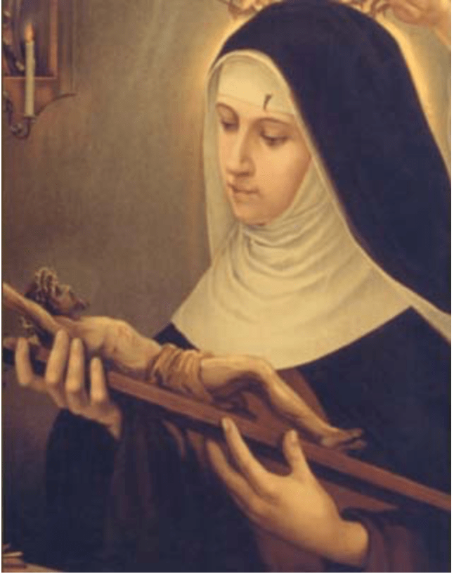 Un Vendredi saint, après un carême prêché par un Franciscain, elle demande à être configurée au Christ. Elle recevra, sur le front, dans une extase, un des stigmates de la Passion qui ne la quittera plus, sauf durant le pèlerinage du Jubilé à Rome pour rendre grâce de la cessation des guerres dans le pays. Ses dernières années, elle les passe en recluse, ne recevant plus que l’Eucharistie pour toute nourriture.